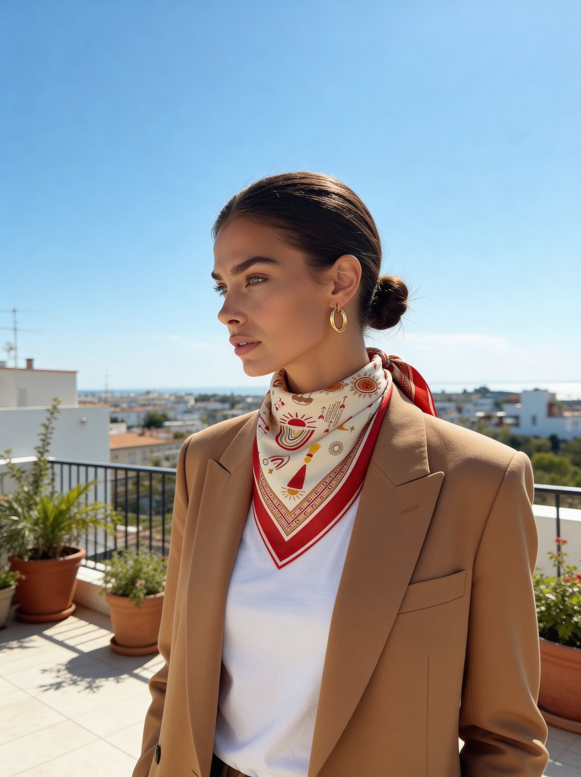 İpek Eşarp - 60cm x 60cm - Tılsım - Kırmızı