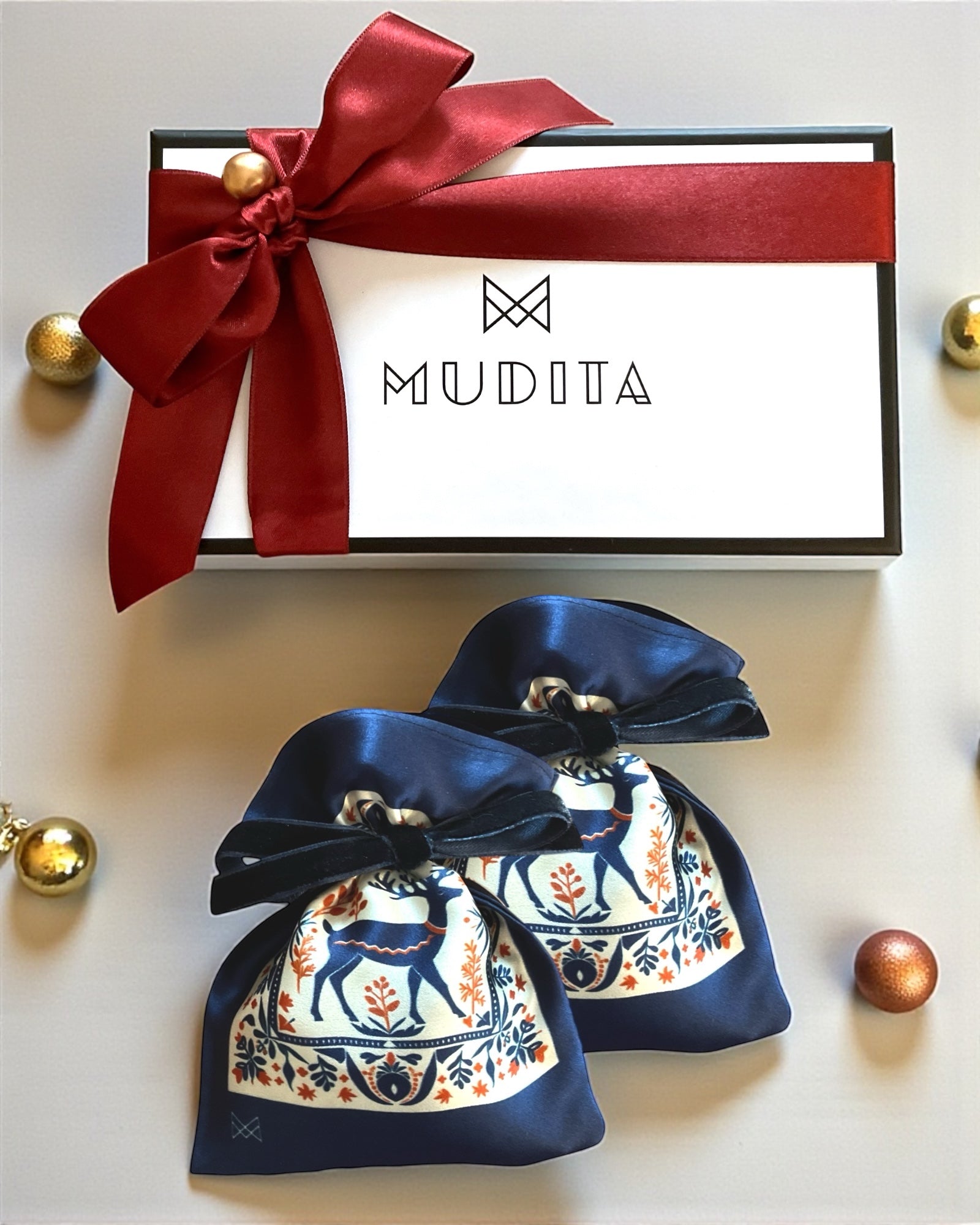Nordic Deer – Kış Masalı Geyiği Desenli İpek Lavanta Kesesi (2’li Hediye Kutusu)