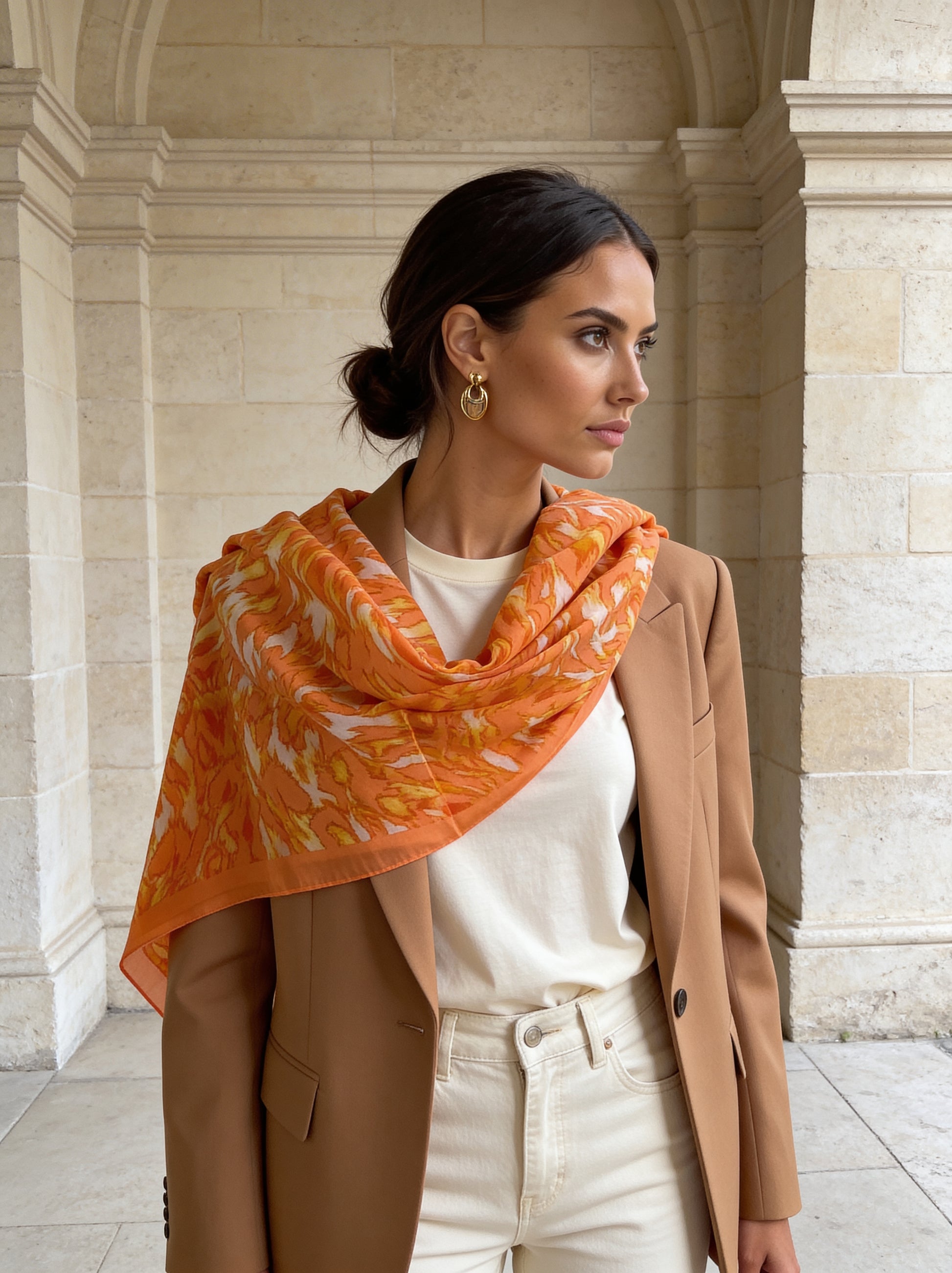 LEO Pareo/Şal - Pamuk & İpek Karışımı - Turuncu